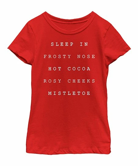 - Full graphic text: Sleep in. Frosty nose. Hot Cocoa. Rosy cheeks. Mistletoe.