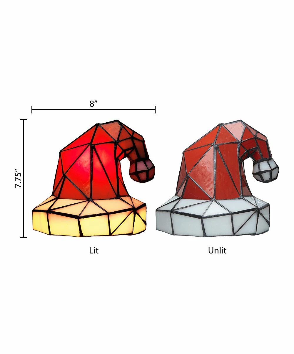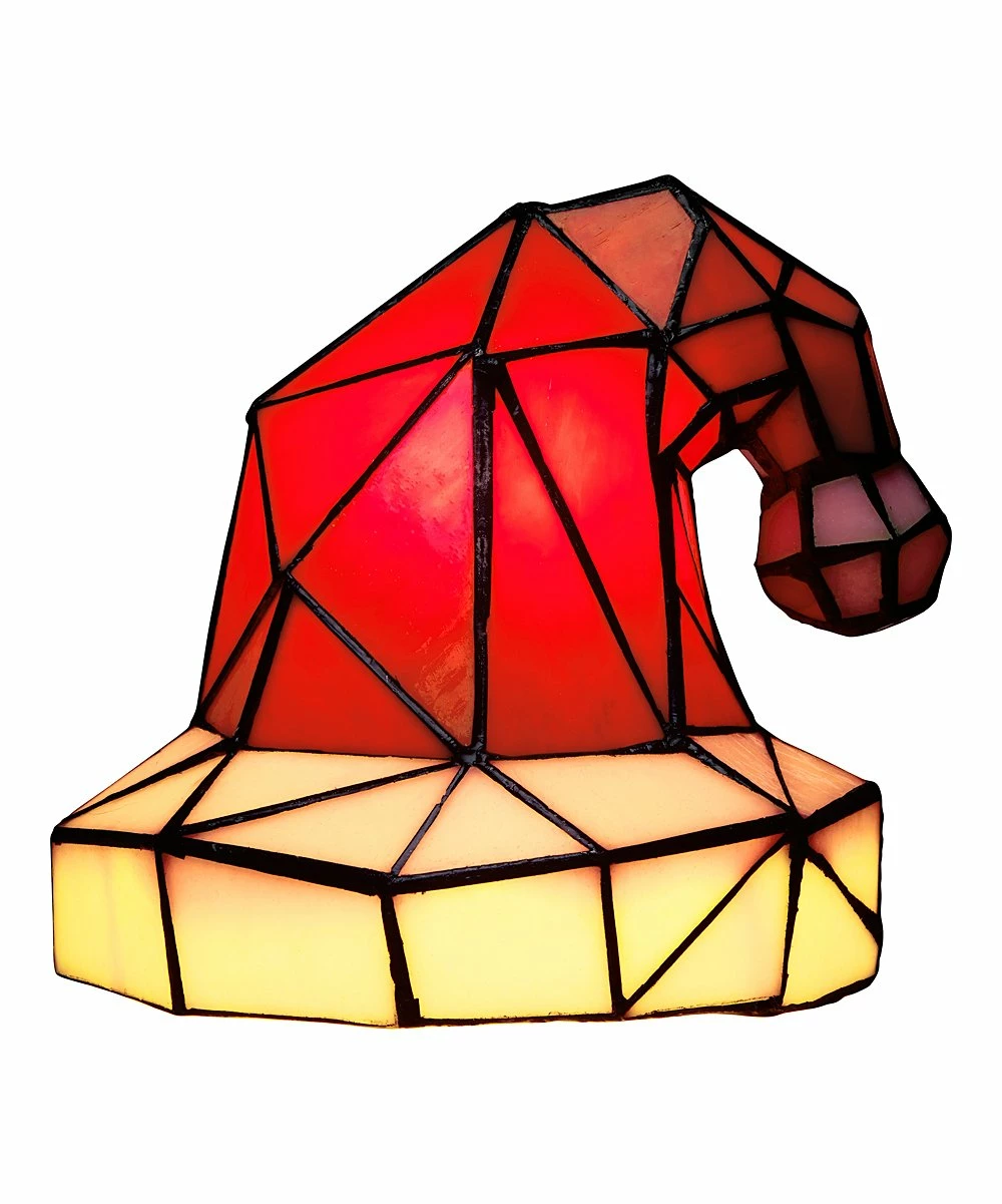 A warm, rosy glow is emitted from this Santa hat-shaped table lamp made of textured stained glass.