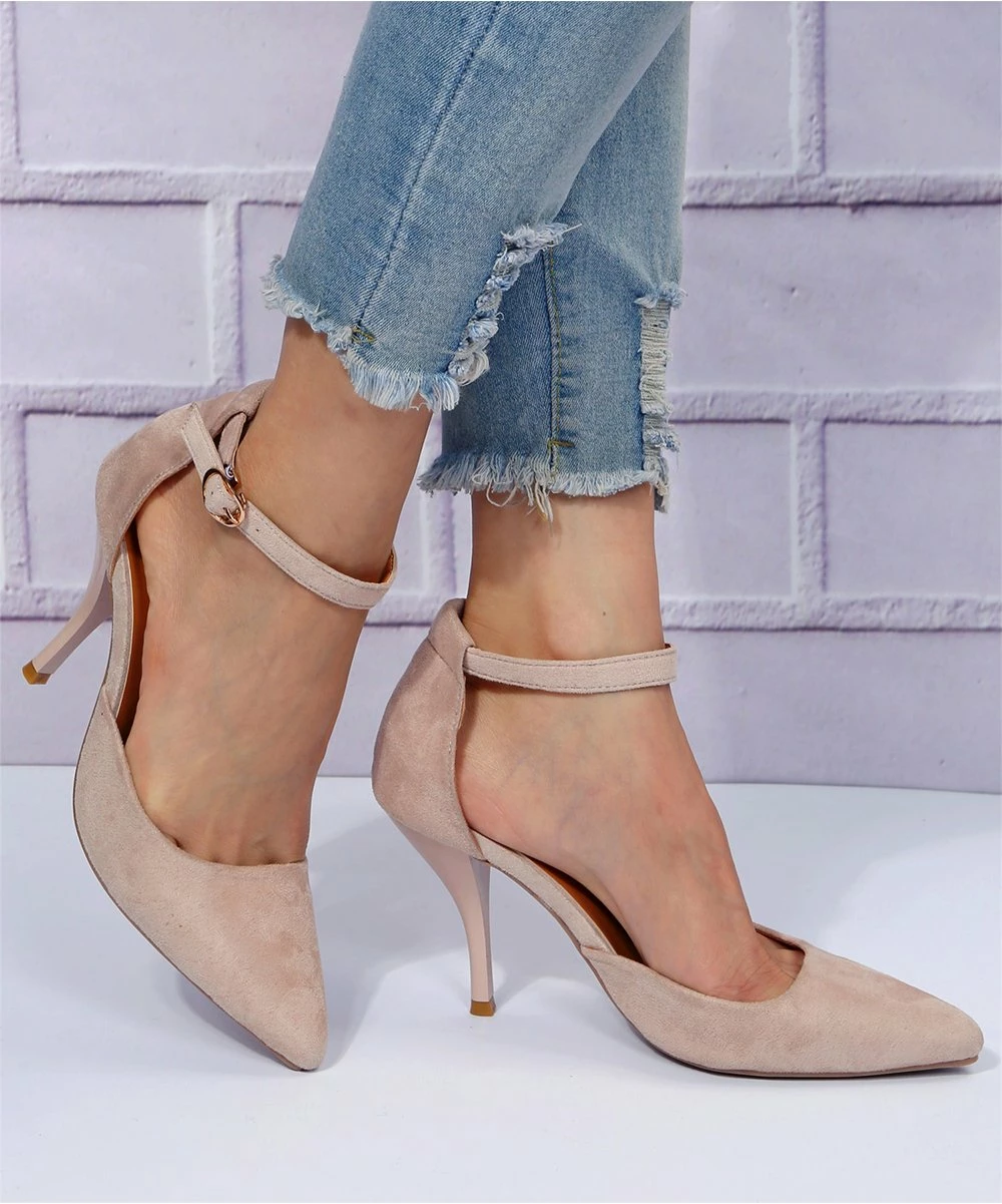 Add sophistication to your look with this pair of pumps featuring a classic pointed toe and neutral hue.