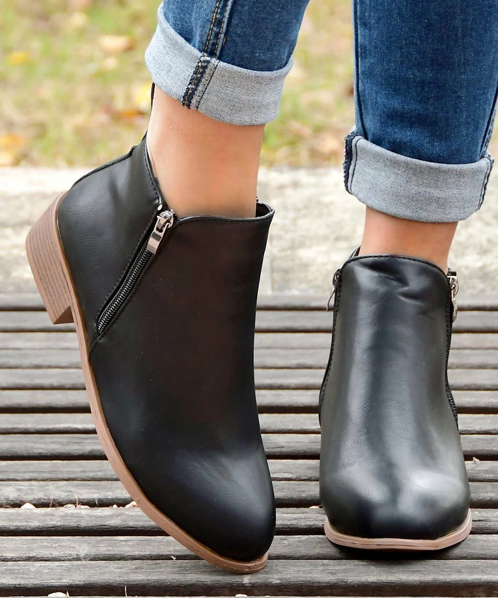 Step into a new look with these double zip ankle boots featuring a low heel.