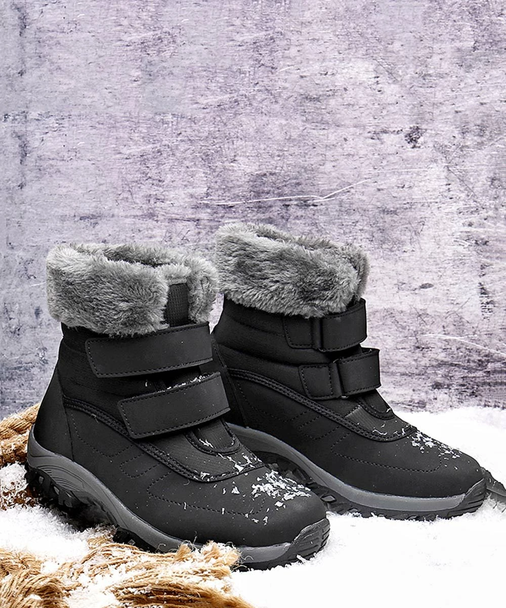 Conquer cold, wet days with confidence in these waterproof winter boots featuring snuggly faux fur trim and an easily adjustable hook and loop closure.