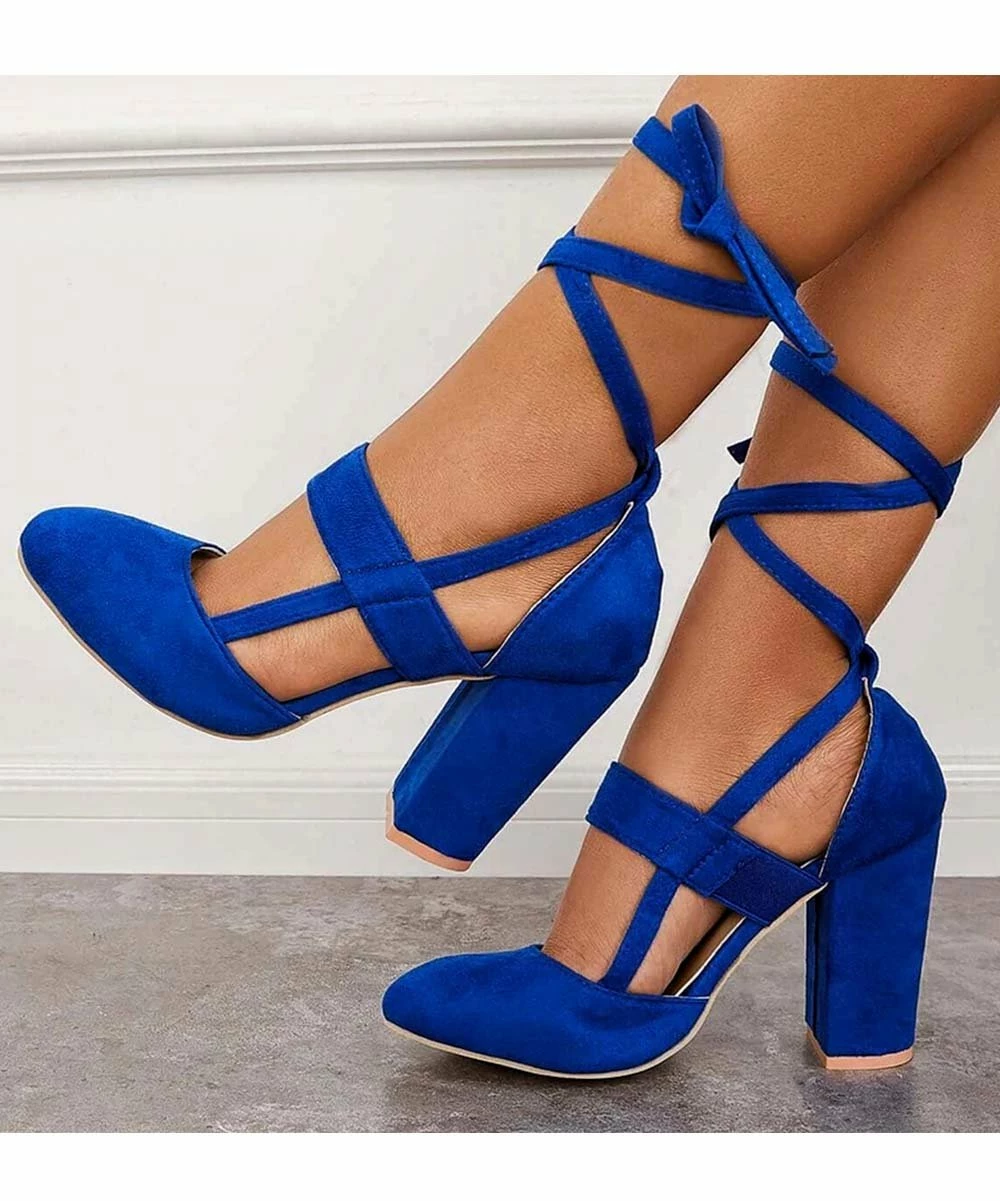 Elevate your look with these strappy sandals featuring a block heel for graceful height.