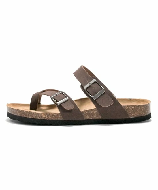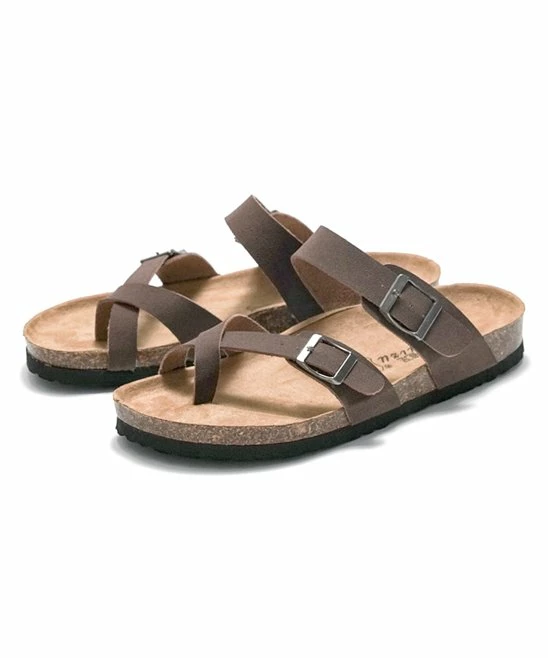 Step out in this sandal to fit your warm-weather ensembles. A crossing toe strap and buckle straps adds subtle style.