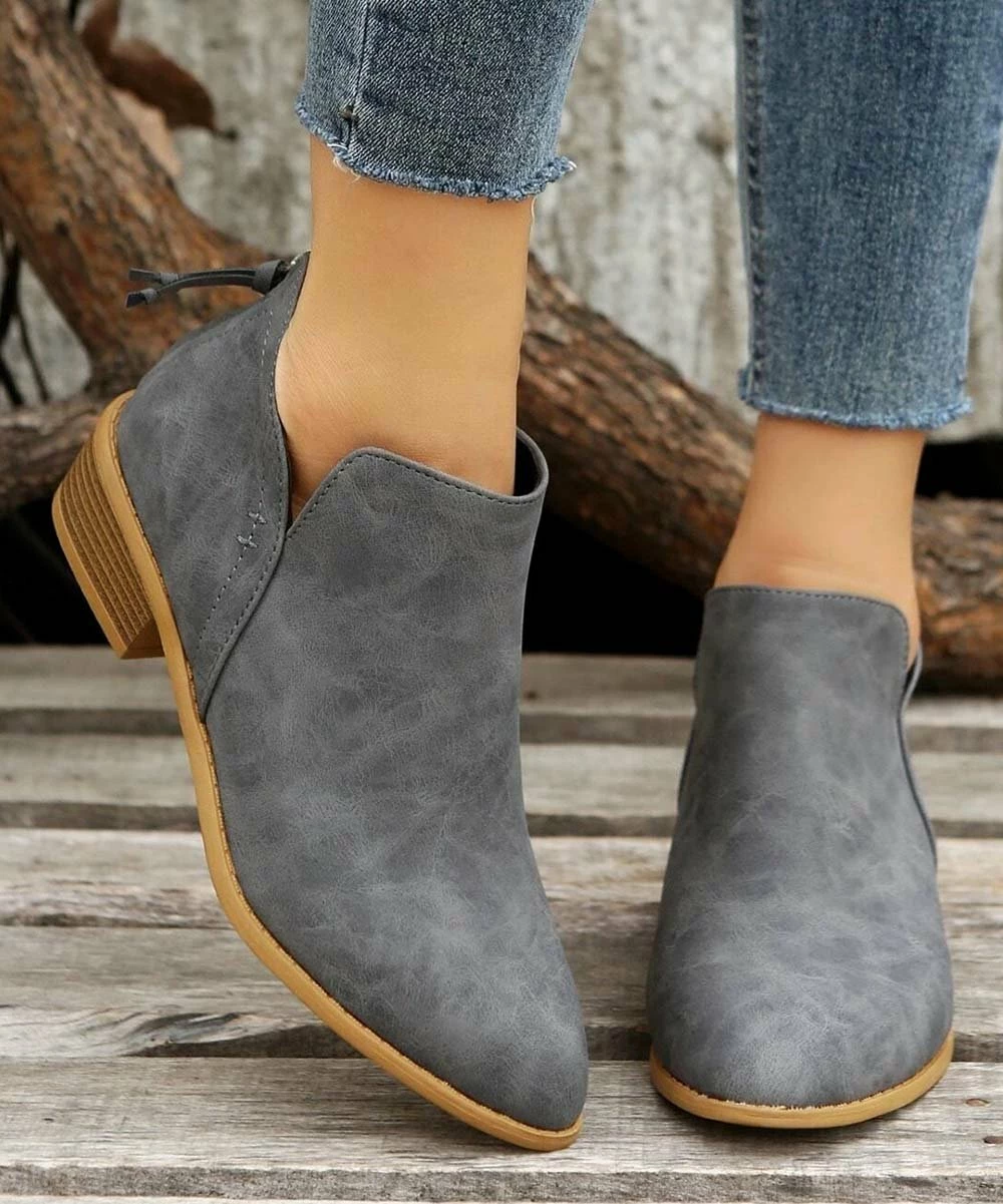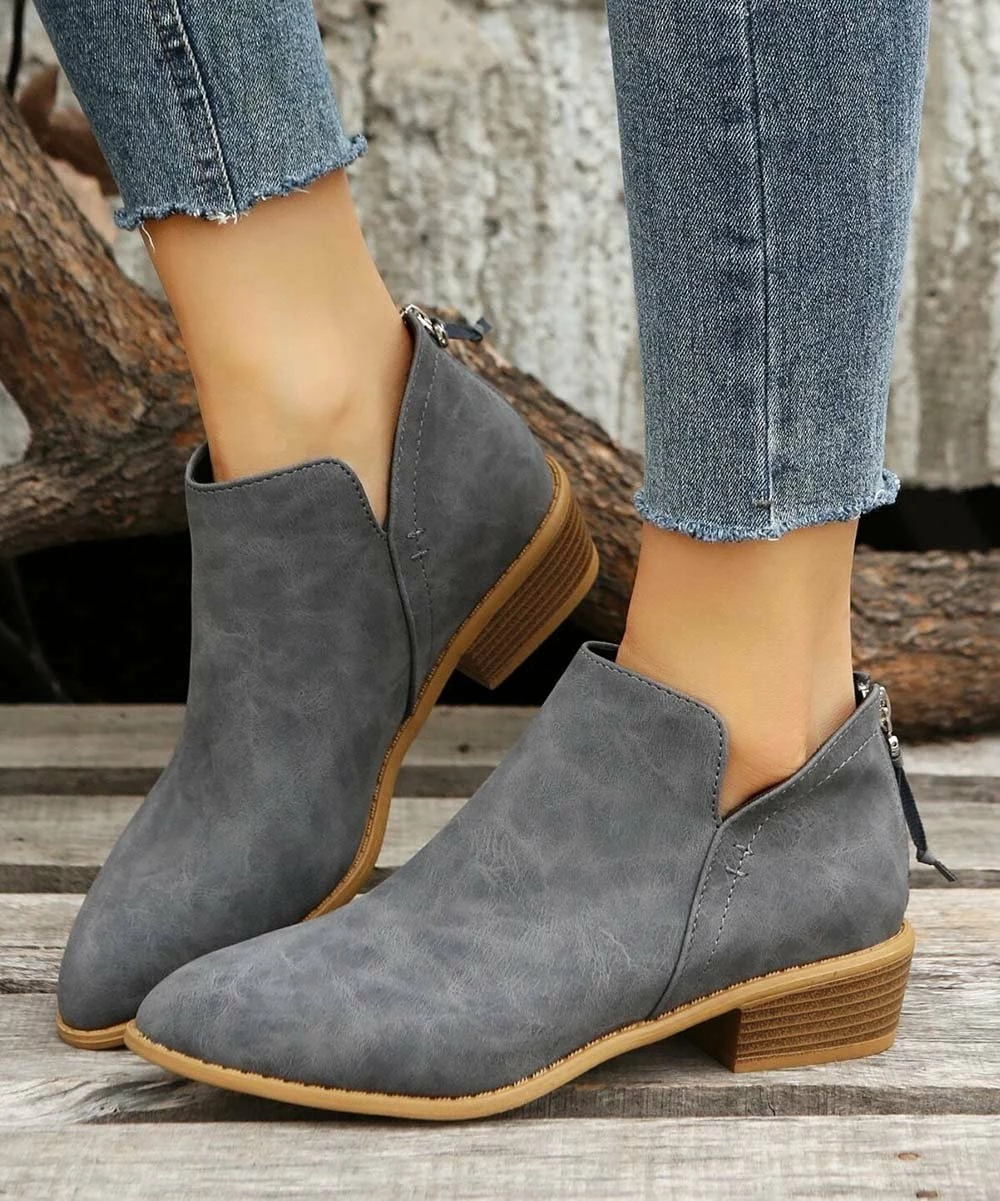 Look amazing in these twin buckle ankle boots that offer a strappy look and a side zipper.
