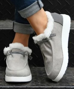 Cheap π ROSY Gray Faux Fur-Lined π₯Ώ Boat Shoes – π© Women π§¨
