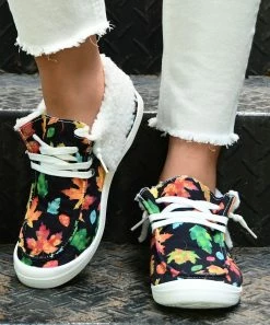 Budget π― ROSY Black Maple Leaf Fold-Over Faux Fur-Lined Boat π Sneaker – π© Women βοΈ